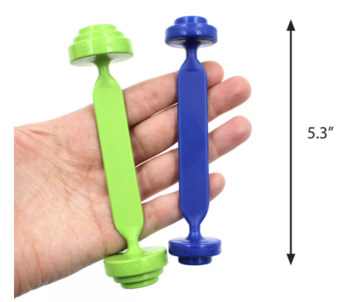 Para usar: Coloque a parte plana da barra azul entre os lábios. Peça ao indivíduo que a segure (usando apenas os lábios, sem dentes) para trabalhar o vedamento labial, a força e a resistência. Para aumentar o nível de dificuldade, use a barra verde que é mais pesada.