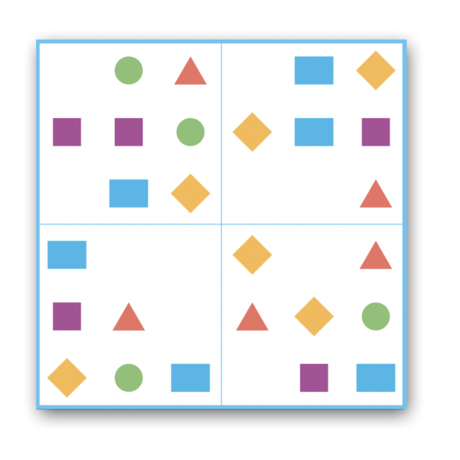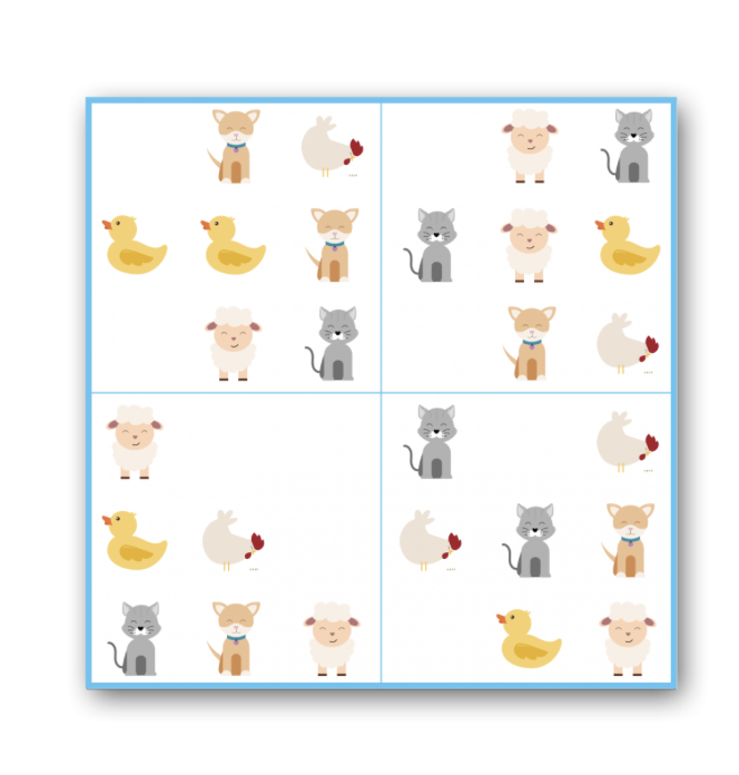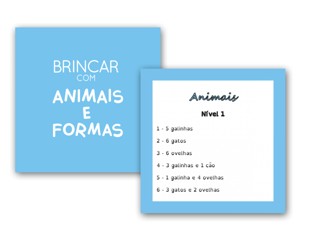 • 8 cartas, com exercícios de diferentes níveis de dificuldade (4 cartas com os Animais e 4 cartas com as Formas);