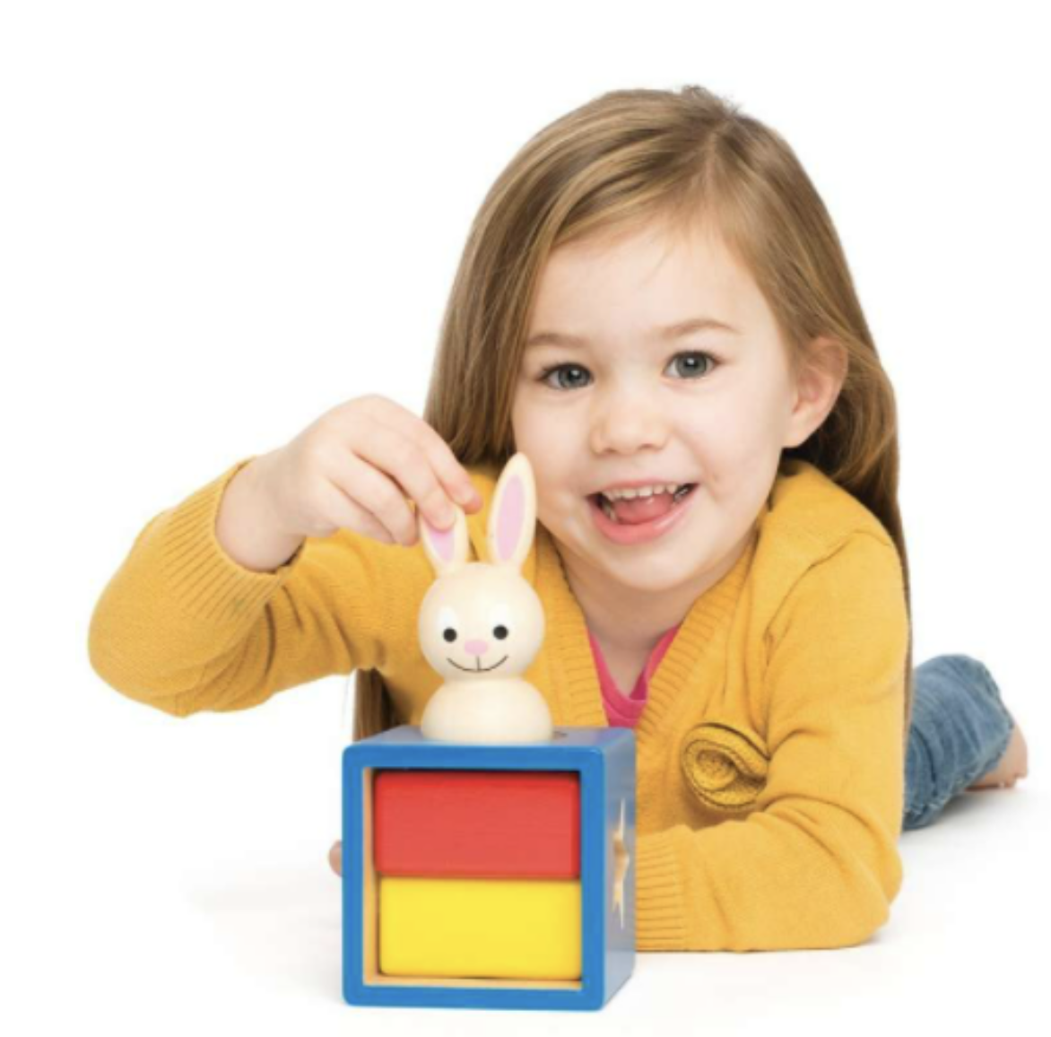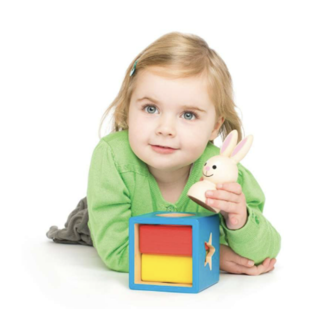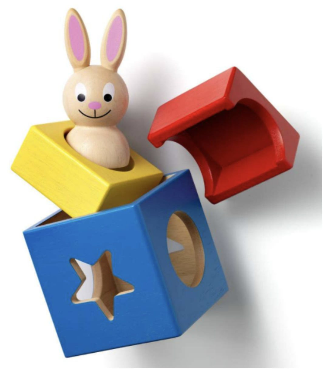Puxa um coelho para fora da caixa! O coelho está a espreitar pelo buraco redondo ou em forma de estrela? Está em cima do bloco amarelo, vermelho ou azul? Alguns desafios podem parecer semelhantes mas a solução pode ser completamente diferente dependendo do quão longe as orelhas do coelho se destacam. Uma excelente forma de treinar a percepção das imagens e aplicar o que observam a 2 dimensões no espaço, Como “acima/abaixo”, “dentro/fora”, “visível/oculto” e etc.