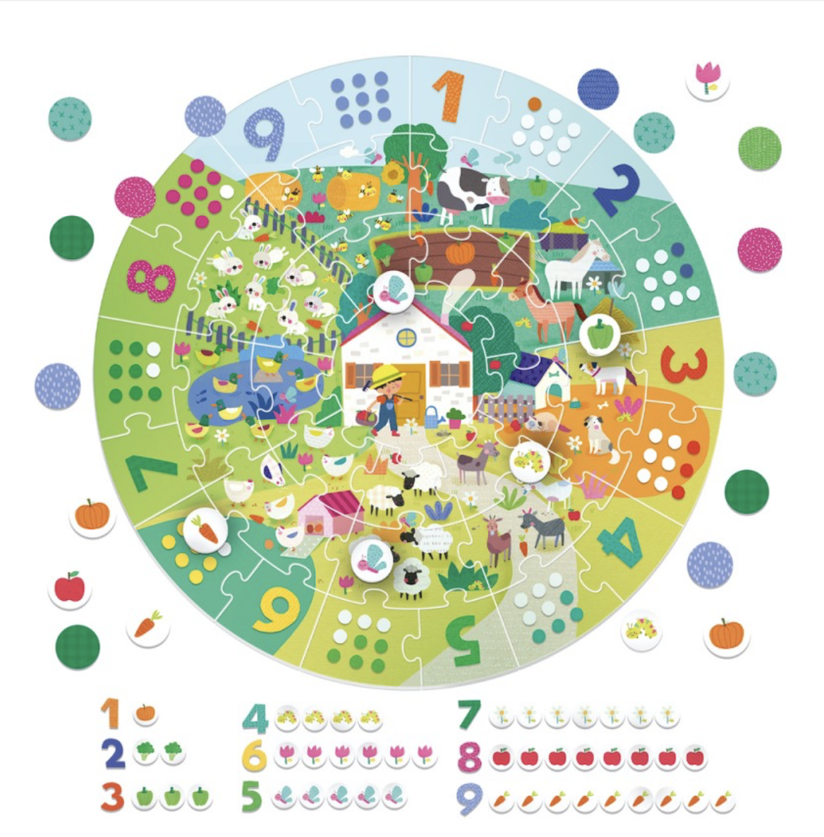 Observa e conta na Quinta Constrói o puzzle grande da Quinta e descobre os números e as quantidades.