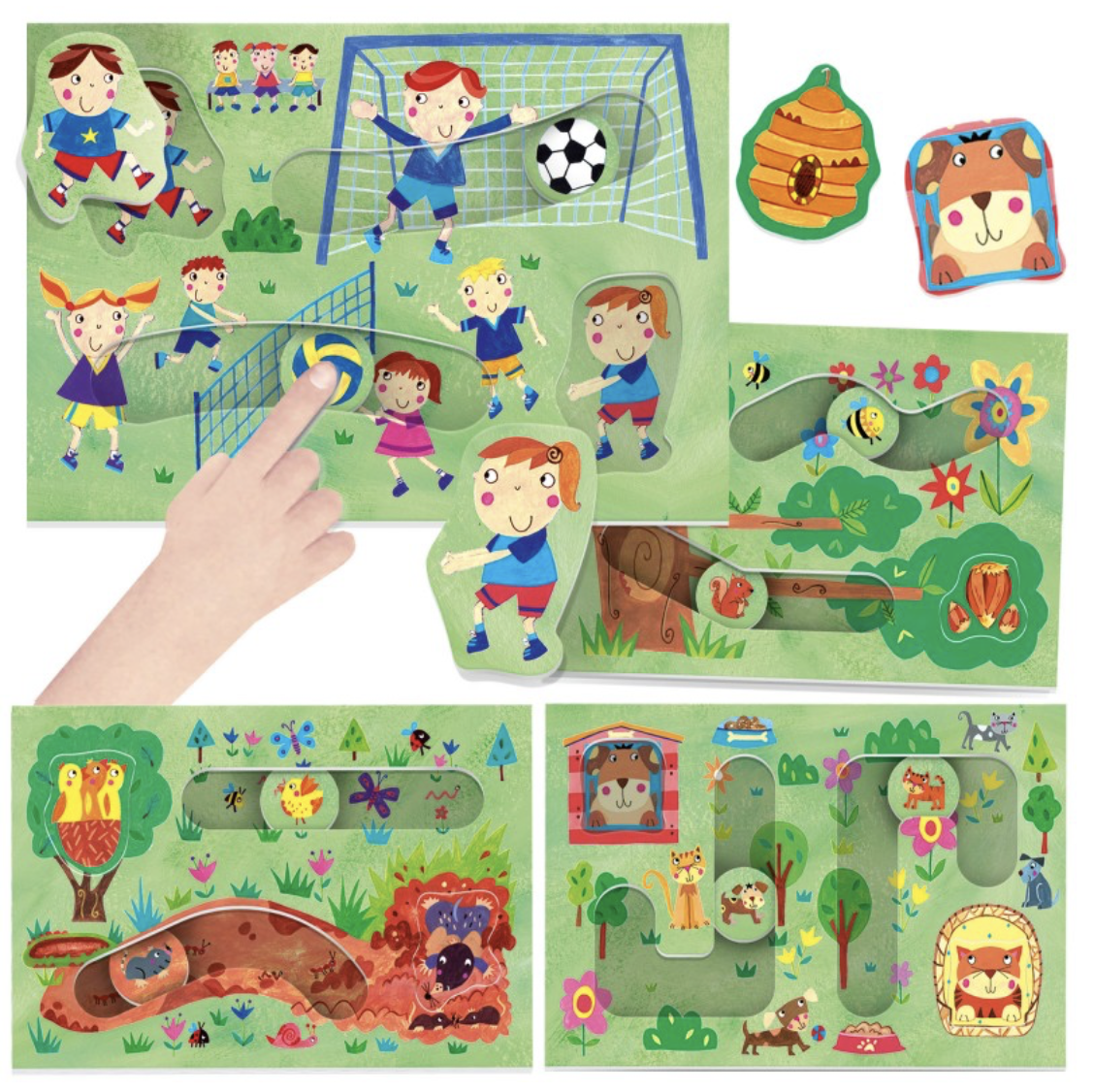 Para onde vai o gatinho? Quem chutou a bola? Desenvolve o raciocínio lógico e diverte-te a fazer muitas descobertas na companhia de muitos personagens fofinhos!